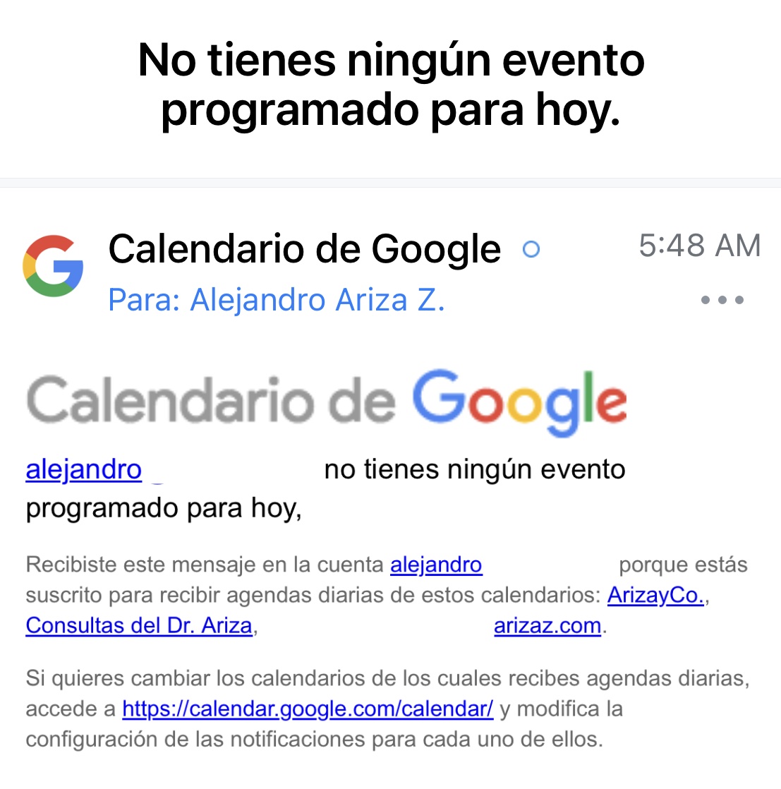 Pues bien, el tiempo ha pasado y, hoy en día, cuando mi correo electrónico me informa a las 5:00 A.M., el resumen de mis citas del día, me apareció, al fin, lo que hoy sé que es la absoluta certeza de que, al fin, ¡ya soy verdaderamente importante! Antes «me sentía» importante, muy importante. Pero hace tres días, por citarte un ejemplo, me apareció en mi correo la absoluta certeza de que ya lo soy, muy importante, pero muy importante ahora de verdad. Te comparto hasta foto de la constatación de esta verdad: