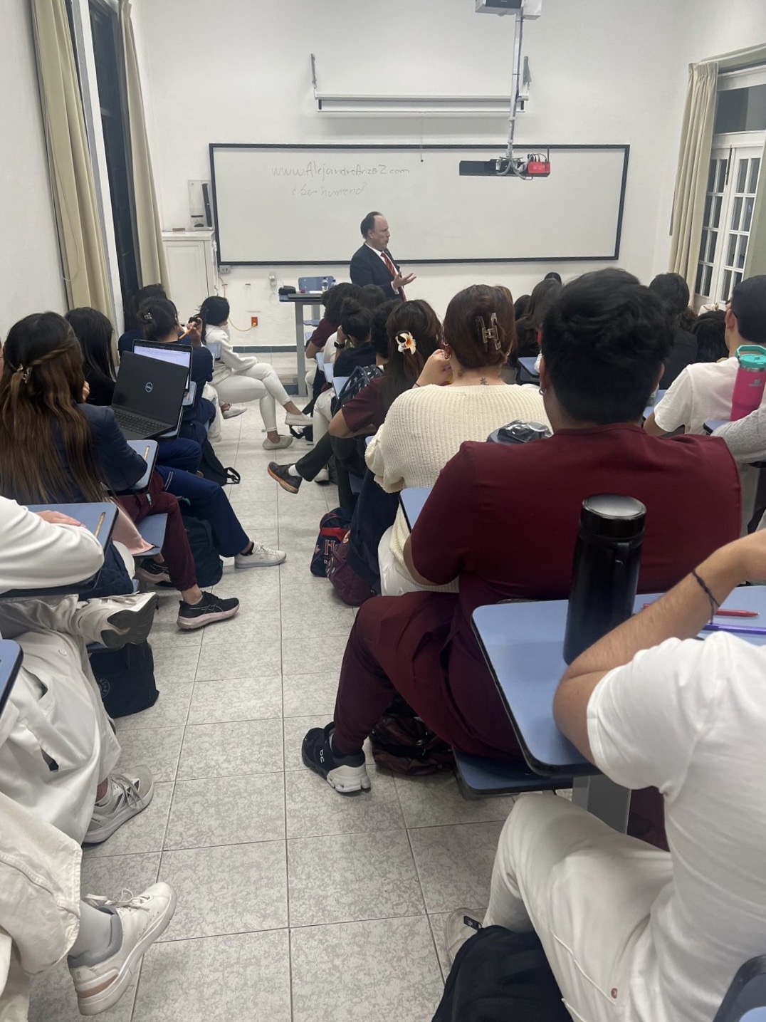 Y para mí, también está siendo una gran experiencia. Para mí, es una gran fuente de sentido existencial, alegría y responsabilidad por sentir el placer de obedecer un propósito que siento que viene ordenado por Dios. Como todo. La manera en que llegué ahí es una de esas cosas extrañas, como muchas de las experiencias divinas. Por allá del mes de septiembre u octubre del año pasado, mientras me encontraba comiendo en casa, de repente recibí una llamada en mi celular y ahí se me invitaba a dar clase. Quien me llamó, una alta académica responsable de la institución, la Jefe de Materias Clínicas, ya me conocía desde hace muchos años y había asistido a varias de mis conferencias. Esta historia es otra más donde se comprueba un clásico: tu prestigio te promociona y te abre puertas. Sin pensarlo, dije que sí. Y llegó el momento.